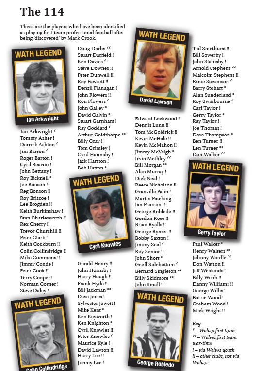 Mark Crook was arguably English football’s greatest scout. After playing for Wolves in the 1930s, Crook returned to his native Yorkshire where he set up the Wath Wanderers nursery club, from which an incredible 114 players progressed to play elite level football. Most of these players spent time at Molineux as youth team players, with 39 of them progressing to play for Wolves’ first team (12 of these were in the War League).